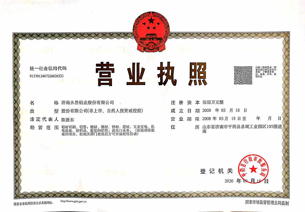 濟(jì)南永昌鋁業(yè)股份有限公司歡迎各界人士來電垂詢,我們將竭誠為您服務(wù)!